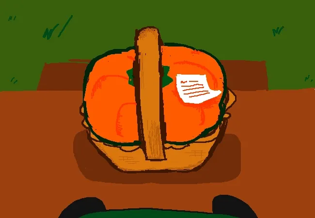 Carefully wrapped in a (admitedely really pretty) hand-made vine basket, there was a big, bright orange pumpkin. Meryl didn’t like pumpkins that much (nor were they built in need of real food, for that matter), but it would be such a jerk move to not aknowledge the gesture.