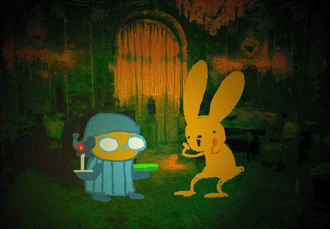 Meryl led the way up the stairs to a small chamber in their mansion. It seemed to be a clothing closet. They reached a little box on a near shelf, and took a pair of clothes for Mr. Rabbit to wear.