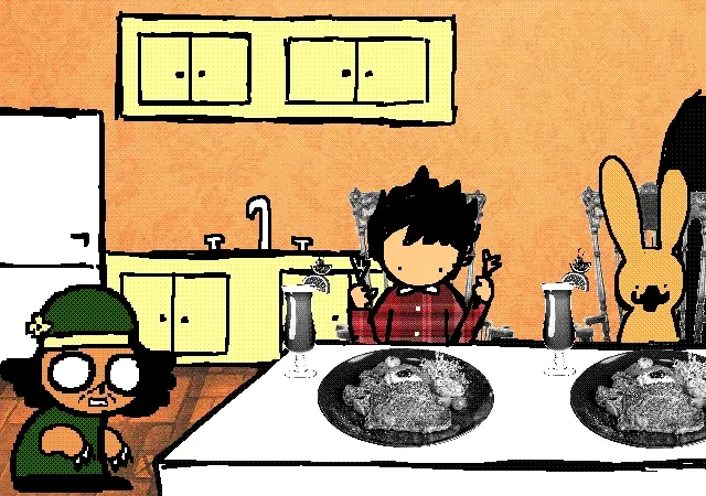 "Won't you eat anything, Maryl?"“oh, ho ho, i’m not hungry, dear. now, while you guys enjoy your deserved feast, maybe we can discuss about something of bigger importance. mr. rabbit?”